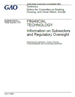 12 сентября 2017 Счётная палата США (Government Accountability Office, GAO) выпустила отчет под названием GAO-17-806T «Финансовые технологии: Сведения о подсекторах и о надзорной деятельности» (Financial Technology: Information on Subsectors and Regulatory Oversight).