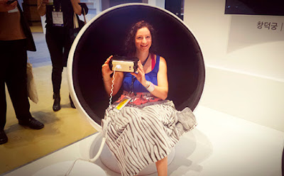 «Юп-пии, кажется, я в нужном месте! Вау, я и правда здесь! Погодите, а знаю ли я, что я тут делаю? Зачем я здесь?! Эх, сделаю-ка я лучше фотографию!» - такие мысли промелькнули у меня в голове, когда я в первый раз проходила мимо здания COEX (места проведения Конгресса Международного совета архивов в Сеуле), и увидела на флагштоках вдоль дорожки флаги с надписью «Конгресс МСА в Сеуле». Само собой, я быстренько остановила кого-то из прохожих, попросила их меня сфотографировать, а затем отправила снимок в твиттер (см.